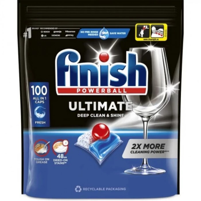 Капсулы Finish Ultimate All in 1 — это инновационное средство для посудомоечных машин, которое обеспечивает безупречно чистую посуду без лишних усилий. Благодаря усовершенствованной формуле, эти капсулы удаляют даже самые стойкие загрязнения, в частности остатки пищи, затвердевшие до 48 часов. Вы можете забыть о предварительном ополаскивании — Finish Ultimate обеспечит глубокую очистку и блеск вашей посуды с первого цикла. Особенностью этих капсул является их способность эффективно ухаживать за стеклянной посудой, придавая ей сияющий вид, и защищать ваши столовые приборы от повреждений. Кроме того, новая формула капсул содержит на 15% меньше химических веществ по сравнению с традиционными порошковыми средствами, что делает их более экологичными и безопасными для использования.