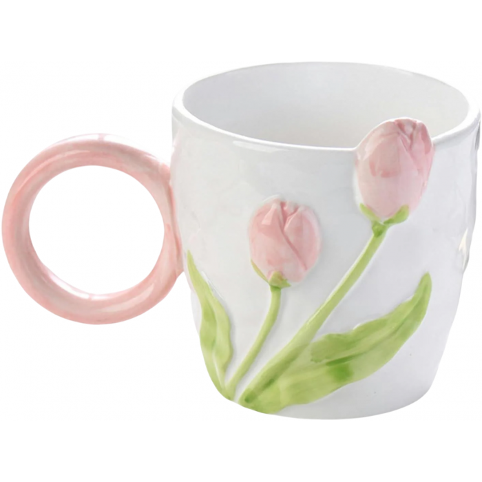 Стильная керамическая кружка с ручной лепкой станет отличным дополнением к вашему столу. Объем 470 мл идеально подходит для чая, кофе или горячего шоколада. Каждая кружка изготавливается вручную, что делает ее уникальной и неповторимой. Узоры "Тюльпаны" добавят ярких красок и тепла в любой интерьер.