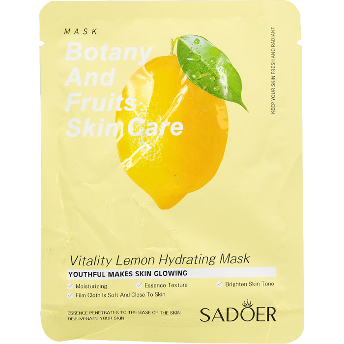 Тканевая маска для лица Лимон Sadoer Botany с лимоном – это освежающий уход, направленный на глубокое увлажнение, питание и осветление кожи. Маска насыщена полезными веществами, которые глубоко проникают в кожу, придавая ей сияние и здоровый вид.