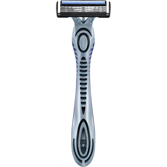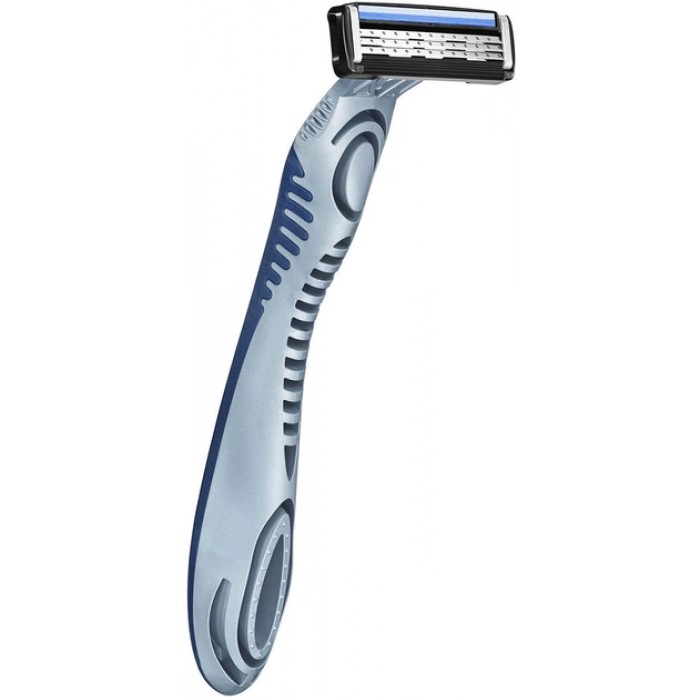 - изогнутая ребристая ручка имеет резиновую накладку для ощутимого контроля и точного бритья;
