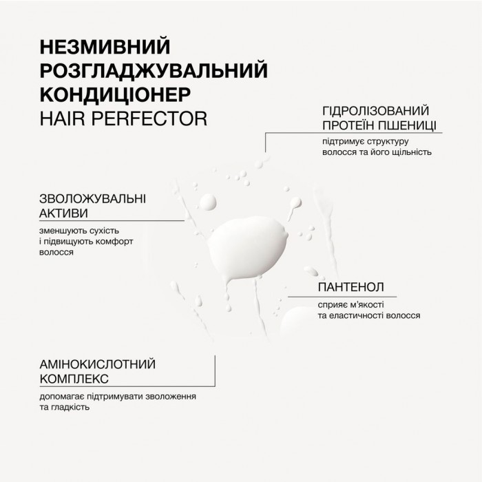 Незмивний кондиционер Hair Perfector создан для мгновенного выпрямления длины, уменьшения пушистости и облегчения расчесывания. Средство помогает дисциплинировать непослушные волосы, придаёт им мягкость и естественный блеск без эффекта утяжеления.