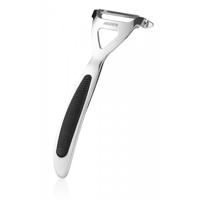 С овощечисткой ARDESTO Black Mars снимать шкурку с овощей и фруктов очень легко. Удобная и крепкая овощечистка изготовлена из цинкового сплава, благодаря которому она будет долго служить. Рукоятка из прорезиненного пластика черного цвета не будет выскальзывать даже в мокрых руках. Изделие размером 16,5 см безопасно в использовании.