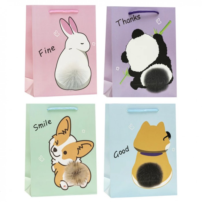 Хотите добавить ещё больше очарования в свой подарок? Наши милые бумажные подарочные пакеты с хвостами животных вызывают улыбки ещё до того, как вы их откроете! Эти очаровательные мордочки и пушистые объёмные хвосты — идеальное сочетание милого и креативного — идеально для любого праздника.