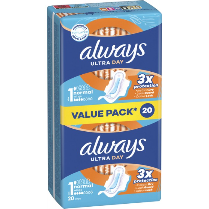 Прокладки Always Ultra Normal (размер 1) с крылышками используют новейшие технологии, создавая многофункциональную прокладку с 3 функциями защиты: