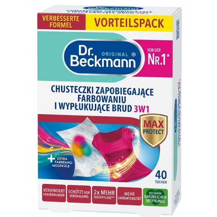 Салфетки Dr. Beckmann 3 в 1 помогают сохранить яркость одежды и защищают ее от нежелательной окраски и посерения во время стирки. Они работают как магнит, улавливая краску и грязь, которые выделяются в воду, и предотвращают их повторное оседание на ткани.