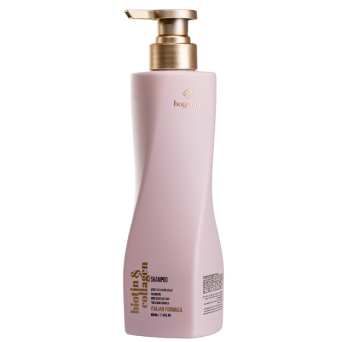 Шампунь с биотином и коллагеном Bogenia Biotin & Collagen Shampoo - восстанавливает и укрепляет волосы благодаря биотину, коллагену, аргановому маслу и маслу ши. Нежно очищает кожу головы, уменьшает зуд, перхоть и пушистость. Волосы становятся более густыми, мягкими и блестящими.