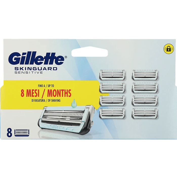 Сменные кассеты Gillette SkinGuard Sensitive для мужской бритвы — первые картриджи с уникальными микрогребнями SkinGuard между лезвиями для защиты кожи во время бритья. Микрогребни SkinGuard уменьшают соприкосновение лезвий с кожей. Кроме того, каждая сменная кассета оснащена 2 оптимально расположенными лезвиями с низкой срезающей силой для бритья без лишних усилий и выдергивания, а также смазывающими полосками с обеих сторон от лезвий для снижения трения и защиты кожи от раздражения.