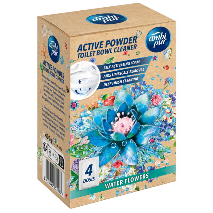 Туалетный порошок Ambi Pur Active Clean с ароматом цветов воды обеспечит вам свежесть и эффективное очищение вашего туалета. Всего одна мерная ложка обеспечит сверкающую чистоту. Порошок мгновенно нейтрализует неприятные запахи и оставляет приятный аромат цветов воды. Он также активно предотвращает образование известкового налета и обеспечивает стойкий блеск. Формула быстро растворяется в воде, позволяя вам легко и без усилий чистить туалет. Идеально подходит для ежедневного использования и для поддержания свежего аромата в любое время.