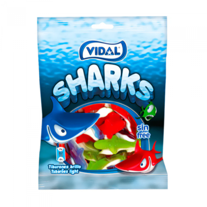 Цукерки Vidal - це унікальні жувальні цукерки у формі мініатюрних акул з фруктовим смаком, які порадують не тільки своїм виглядом, але і яскравим та солодким смаком. Ці цукерки стануть веселим доповненням до дитячих свят або солодким перекусом для всіх шанувальників оригінальних ласощів.