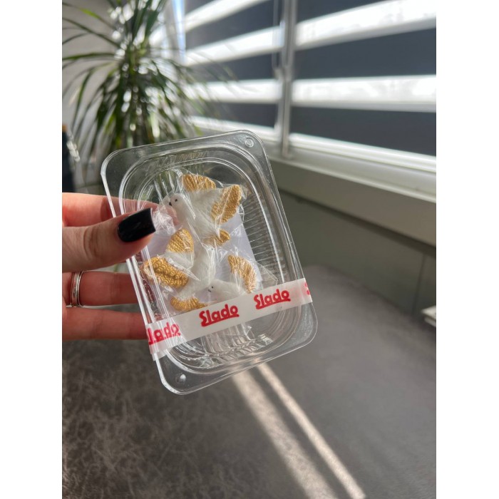 Набір кондитерських цукрових прикрас “Голуби” — символічний та вишуканий декор для святкових і урочистих десертів. Ніжні фігурки голубів надають тортам і пиріжним особливий сенс, відчуття гармонії та чистоти. Прикраси підходять для весіль, хрестин, урочистих заходів та тематичної випічки. Вони допомагають швидко створити завершений, акуратний і професійний вигляд кондитерського виробу.