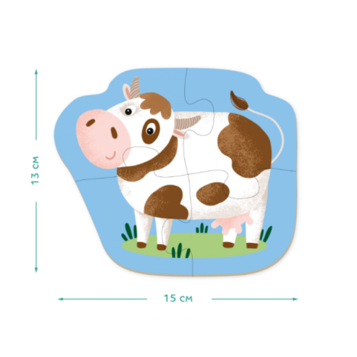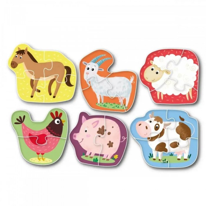 Дізнаємося більше про домашніх тварин за допомогою цього набору пазлів. Хто живе у селі, хто дає молочко, хто несе яєчка? Малята будуть у захваті від милих та яскравих ілюстрацій — більш чарівних овечок ви ще не зустрічали. Серія 2-3-4 елементи — ідеальні перші пазли. Спочатку малята вчаться складати найпростіші фігури з двох елементів, потім ускладнюють задачу з трьома, а потім — чотирма елементами.