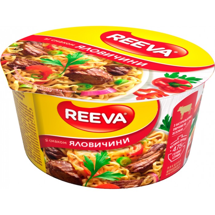 Локшина REEVA поєднала в собі високі технології та справжній домашній смак. Натуральні сушені овочі та зелень, ніжна локшина з українського борошна вищого гатунку, запашний бульйон гарантують справжній смак домашньої страви! І найголовніше - завдяки зручній упаковці ви зможете насолоджуватися улюбленою локшиною у будь-де та у будь-який час.