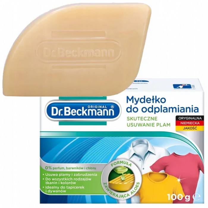 Мило для видалення плям Dr. Beckmann - це засіб для видалення стійких плям з одягу, килимів, м'яких меблів і оббивки автомобіля, за винятком виробів з натуральної шкіри. Зручна формула дозволяє швидко нанести засіб і дозувати його за необхідності.