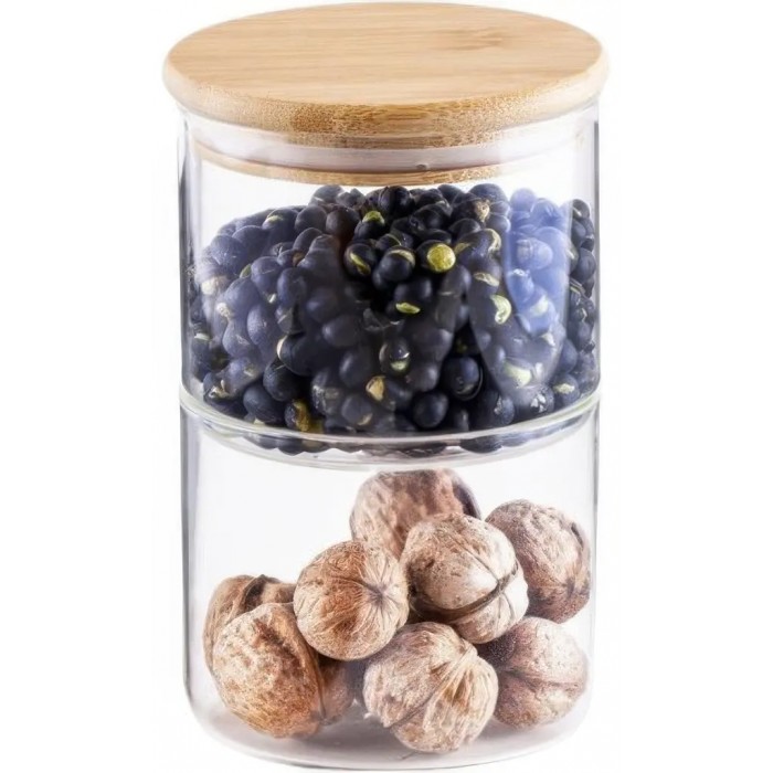 Набір банок Viva Tower - це стильне та практичне рішення для зберігання продуктів. Виготовлені зі скла, банки забезпечують безпеку для їжі, зберігаючи свіжість і дозволяючи контролювати вміст завдяки прозорості. Кожна банка об’ємом 500 мл ідеально підходить для круп, спецій, домашніх заготовок чи сипучих продуктів. Кришки з натурального бамбука додають екологічності та елегантності, щільно закриваючи ємності від вологи й запахів. Компактна упаковка полегшує транспортування та зберігання. Гладка поверхня легко миється, а природний дизайн гармонійно вписується в кухонний інтер’єр, роблячи набір зручним для щоденного використання.