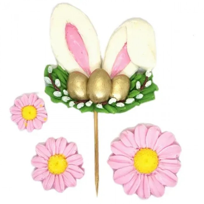 Цукровий декор для паски Весняні вушка рожеві - це ніжна і чарівна прикраса, яка перетворить вашу випічку на справжній святковий шедевр. Ідеально підходить для прикраси великодніх пасок, капкейків, тортів та інших десертів до світлого свята Великодня. Милі рожеві вушка та квіточки створюють атмосферу весни, тепла і затишку, додаючи композиції грайливості і оригінальності.