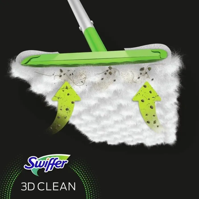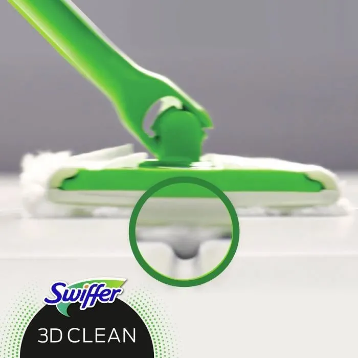 Швабра для прибирання Swiffer 3D Clean + 4 серветки це інноваційна швабра для сухого та вологого прибирання, яка забезпечує ефективне очищення різноманітних твердих підлогових покриттів. Завдяки тривимірній структурі серветок та ергономічному дизайну, прибирання стає швидким, легким та ефективним.