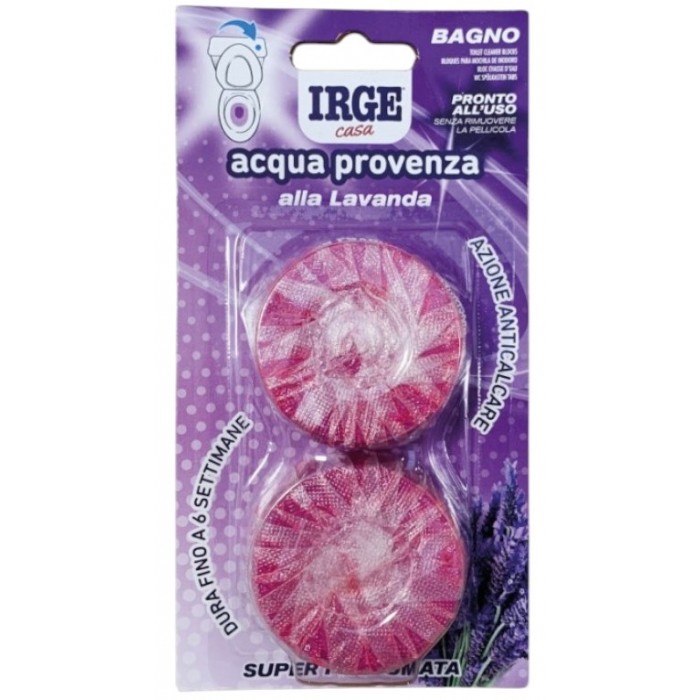 Створення у санвузлі атмосфери чистоти, спокою та свіжості прованських полів стало простим з туалетним таблетками Acqua Provenza alla Lavanda (Прованська вода з лавандою) від IRGE Casa. Цей набір являє собою два концентровані, таблетовані блоки, кожен вагою 50 грамів, призначених для приміщення безпосередньо у зливний бачок.