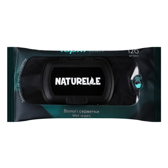 - у місткому пакованні з клапаном-кришкою – 120 серветок чорного кольору;