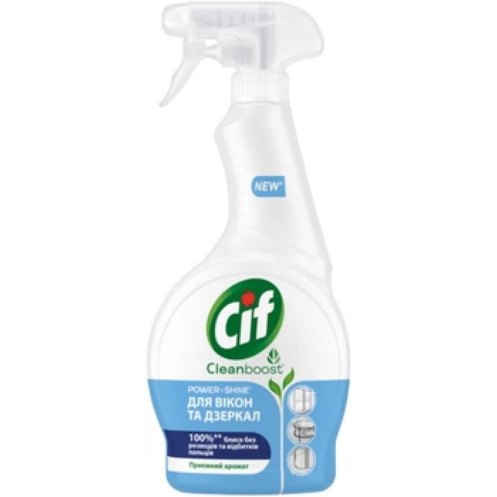 Спрей CIF Power & Shine для чищення вікон і дзеркал, створений за технологією CleanBoost, ефективно видаляє пил, водний наліт, плями від пальців і зубної пасти, забезпечуючи 100% блиск без розводів. Завдяки біорозкладній формулі, віншвидко висихає, не має різкого запаху та підходить для поверхонь, з якими контактують діти чи їжа. Пляшка виготовлена з переробленого пластику, що сприяє екологічності. Ідеальний вибір для кристально чистих вікон і дзеркал без додаткових зусиль.