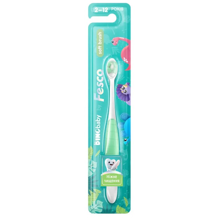 Зробіть перше знайомство малюка з гігієною приємним та веселим разом із Fesco DinoBaby! Ця щітка створена спеціально для найменших: ніжні м’які щетинки дбайливо очищують зубки, не пошкоджуючи ясна.