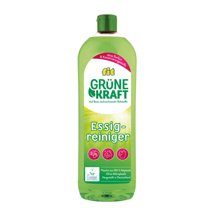 Чистящее средство на основе уксуса Fit Green Power изготовлено из возобновляемого сырья – полностью без отдушек и консервантов.
