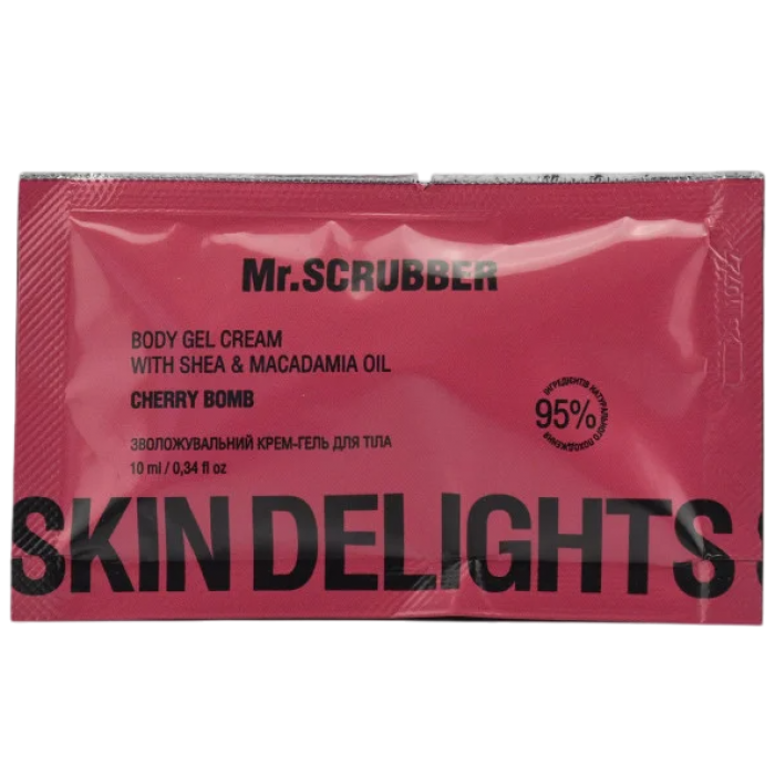 Увлажняющий крем-гель для тела SKIN DELIGHTS Cherry Bomb с легкой невесомой текстурой мгновенно впитывается, разглаживает и смягчает кожу, не оставляет блеска или липкости, насыщает необходимыми компонентами, предотвращает появление сухости или дискомфорта после душа. Натуральные масла в составе питают, сохраняют упругость и эластичность, придают телу шелковистую нежность. Cherry Bomb – яркий, сочный аромат спелой вишни с легкими карамельными нотами мгновенно заряжает энергией и вызывает улыбку.