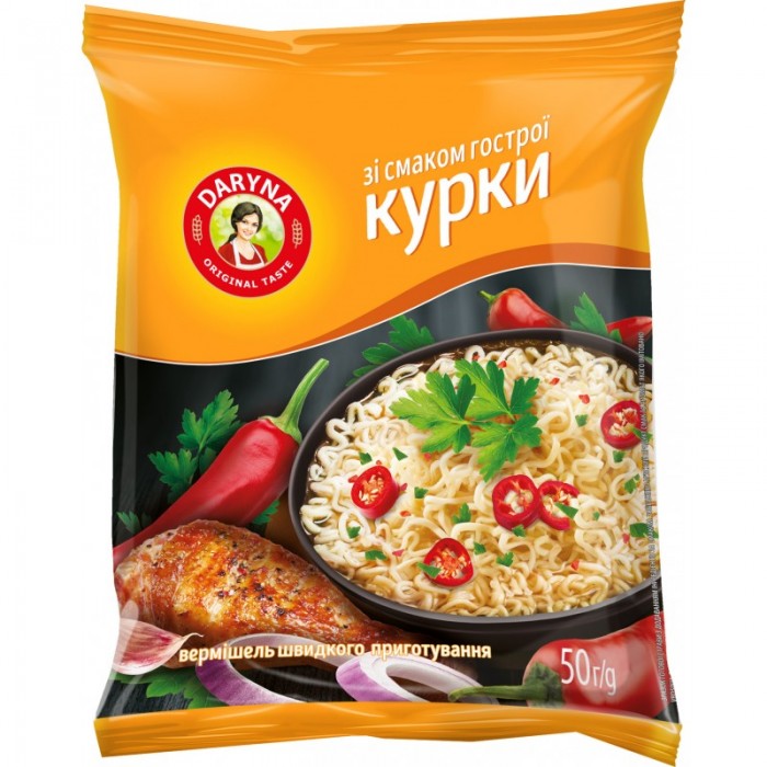 Вермишель быстрого приготовления Daryna – это идеальное решение для тех, кто хочет быстро насладиться вкусным блюдом. Яркий и ароматный вкус домашней курицы с добавлением специй для повышения аппетита. Daryna – ваш идеальный выбор для быстрого, вкусного и экономного питания.