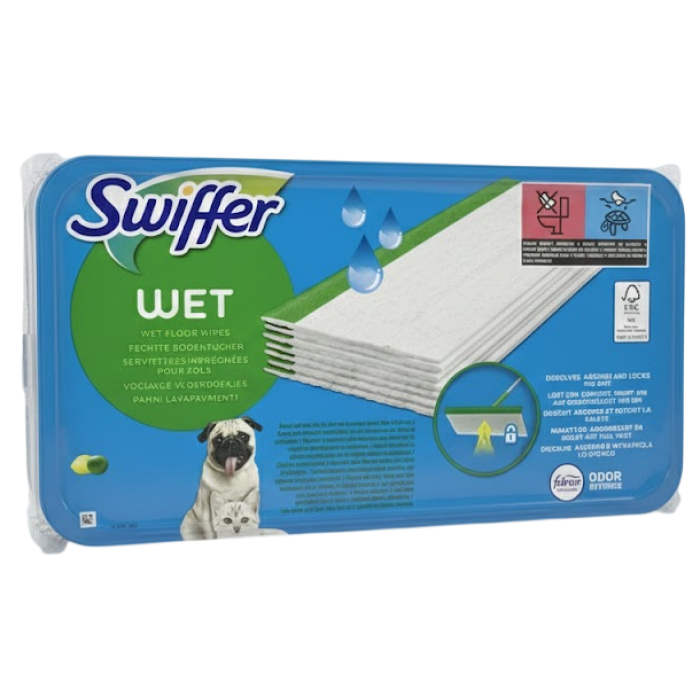 Swiffer Wet Pet — это специальные влажные салфетки для швабры, разработанные для уборки в домах, где живут животные. Они эффективно удаляют грязь, шерсть и неприятные запахи, оставляя пол чистым и свежим благодаря технологии Febreze Odor Defense.